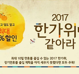 추석 썸네일형 리스트형 추석 연휴 할인 및 무료행사 제주 / 대구 / 대전 / 광주 / 인천 / 울산 추석 연휴 할인 및 무료행사(제주/대구/대전/광주/인천/울산) 최대 명절인 추석에 10일이라는 황금 연휴가 더해 풍요롭고 행복한 휴일이 되었습니다. 그리하여 추석연휴행사를 지역별로 나열해 보았습니다. 제주 / 대구 / 대전 / 광주 / 인천 / 울산까지 지방에서 즐길 수 있는 행사가 무료이거나 할인을 한다는 정보를 모아봤습니다. 일부지역은 다른 포스팅에 올려놨으니 참고하시기 바랍니다. 즐거운 추석연휴 즐기시기 바랍니다. 제주도 [Jeju Island, 濟州島] 구엄어촌체험마을체험료 20% 할인기간 : 9.30(토)~10.9(월) 장소 : 제주시 애월읍 애월해안로713 추석 당일(10.4) 미운영홈페이지 www.seantour.kr문의처 : 010-5391-5782 국립제주박물관체험 프로그램 7개 무료 *.. 더보기 한가위 부산추석맞이 할인 및 무료행사 한가위 부산 추석맞이 할인 및 무료행사 이번 추석은 최대 10일 연휴를 즐길 수 있다고 합니다. 장기 연휴를 즐길 계획을 아직 세우지 못했다면 부산 지역의 이곳을 참고하시면 좋을것 같습니다. 국립부산과학관, 국립부산국악원 한류상설공연, 국립해양박물관총,부산 낙동강하구 에코센터에서 할인 및 무료로 행사를 진행하고 있으니 이점 참고하시기 바랍니다. 국립부산과학관 상설전시관 관람료 50% 할인 기간 : 10.2(월)~10.9(월) (10.4일은 임시휴관) 장소 : 부산 기장군 기장읍 동부산관광6로 59 홈페이지 www.sciport.go.kr문의처 : 051-750-2300 국립부산국악원 한류상설공연 입장료 할인->10,000원(부산시민에 한해) 기간 : 9.30~10.8장소 : 부산시 해운대구 해운대해변로 .. 더보기 이전 1 다음